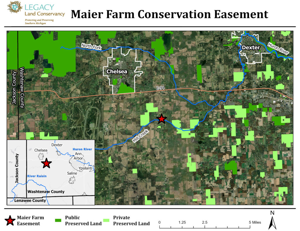 Legacy Land Conservancy has permanently protected 26 acres of farmland and forest along Mill Creek in Chelsea, completing a project that began with landowner Craig Maier and was carried forward by his wife, Anastasea (Stacy), in his memory.